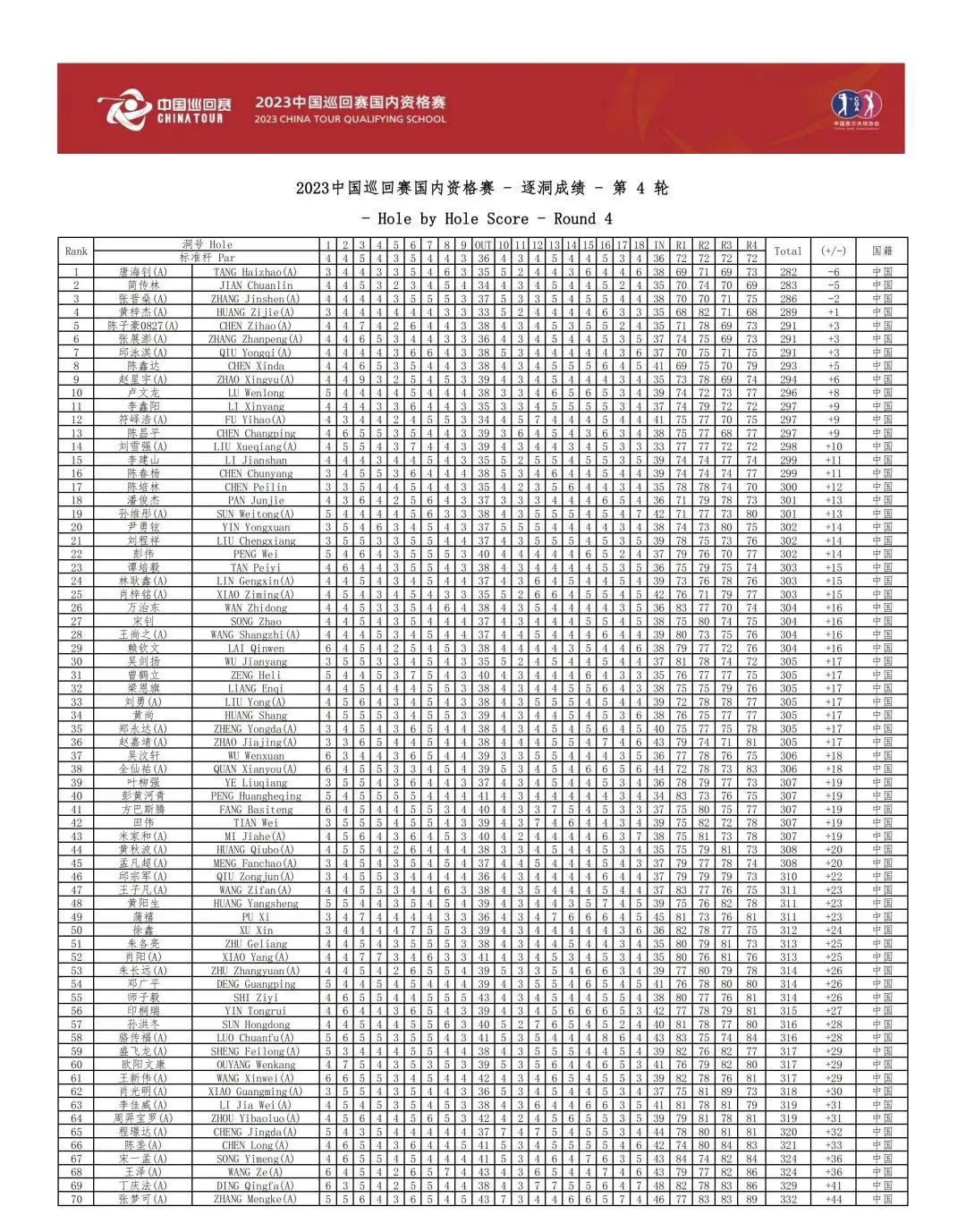 来自重庆的16岁业余球员唐海钊连续三轮以黑马之姿领跑全场。第四轮他捉到7只小鸟,吞下1个柏忌,3个双柏忌,打出73杆(+1)。最终以282杆(-6)的总成绩,1杆优势成为本场国内资格赛状元。