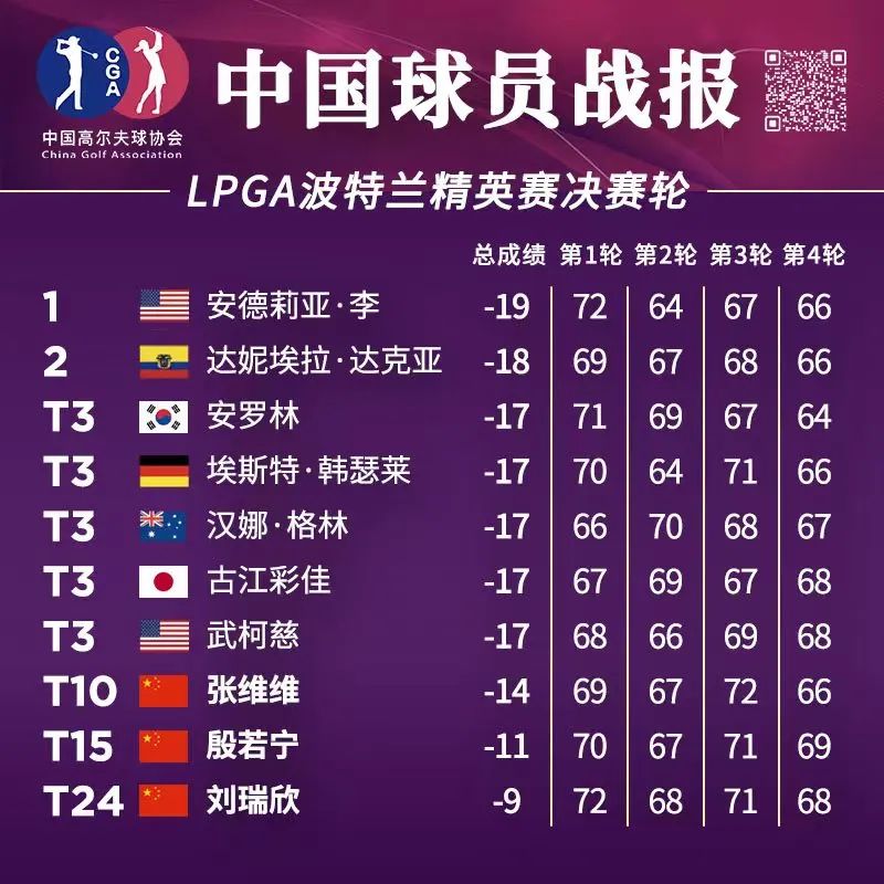 张维维首进前十,殷若宁T15丨LPGA波特兰精英赛