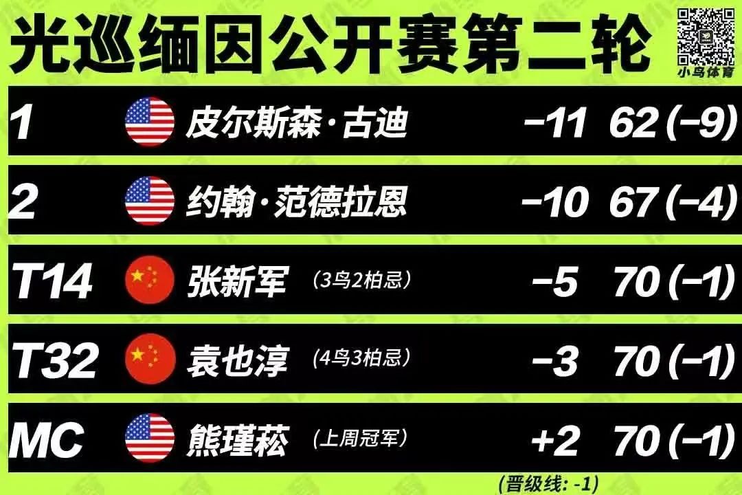 转场后,昊桐的得分势头有所放缓,他在11号洞收下一鸟,其他洞均以平标准杆的成绩通过。第二轮,昊桐共打出1鹰5鸟2柏忌,-5杆的成绩。他的总成绩提升至-15杆,目前暂时排名领先榜榜首位置。