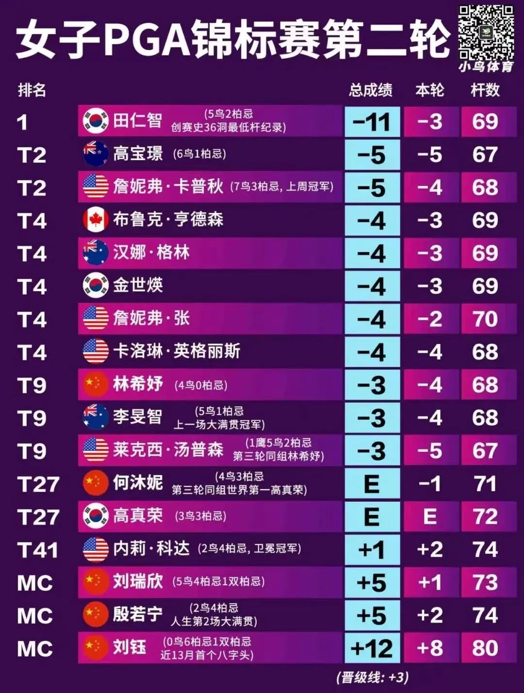 中国球员何沐妮4只小鸟3个柏忌,打出71杆,以144杆(73-71),平标准杆,并列位于27位。