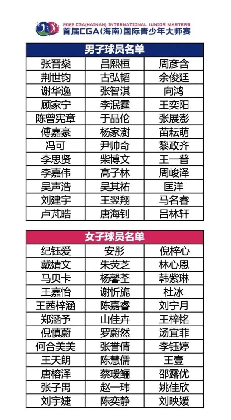 少年“执杆”乘风起 CGA(海南)国际青少年大师赛72人全名单公布