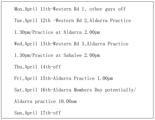在华盛顿大学,校队教练Alan Murray为每个人制定了周计划。彭博4月11日到4月17日的计划如下: