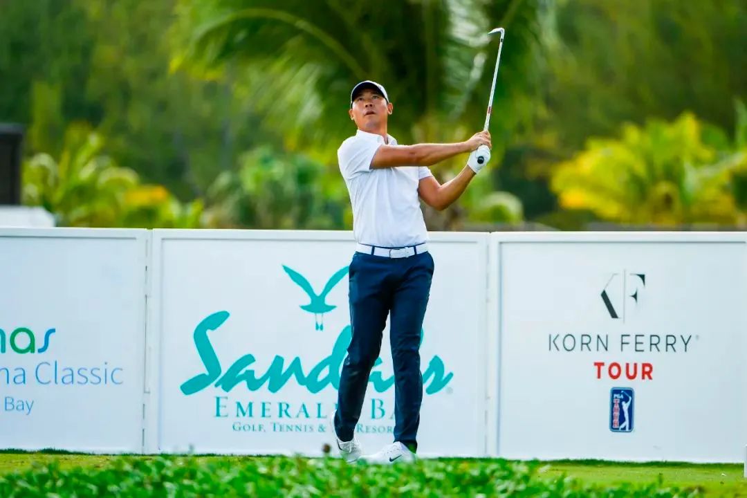 2.3-2.7 光辉国际巡回赛巴拿马锦标赛袁也淳T2/窦泽成T5/张新军T252月7日,光辉国际巡回赛2022年第三站巴拿马锦标赛落下帷幕。美国27岁选手卡森-杨决赛轮抓到3只小鸟,打出68杆,低于标准杆2杆,赢得冠军。中国选手袁也淳在落后2杆的情况下开启决赛轮。决赛轮收官阶段,他连抓3只小鸟,打出68杆,落后1杆,与另外两位选手并列位于第二位。这是他在光辉国际巡回赛的第四个亚军。去年,他三次屈居第二。袁也淳总结全天的时候说:“今天也是风比较大,果岭硬,出发前就知道会是比较艰难的一天。前面有一些鸟的机会,但都差一点点,7号洞出现了一个失误,打了+2杆(双柏忌)。转场以后一度落后比较多了,但我还是咬紧牙关继续战斗?!绷硪晃恢泄蛟瘪荚蟪勺詈笠宦忠步怀?8杆,包括4只小鸟2个柏忌,以四轮275杆(69-67-71-68),低于标准杆5杆,并列位于第五位。张新军从上一轮的77杆反弹回来,交出67杆,低了10杆。他抓到5只小鸟,吞下2个柏忌,四轮280杆(68-68-77-67),平标准杆,排名上升到并列位于25位。