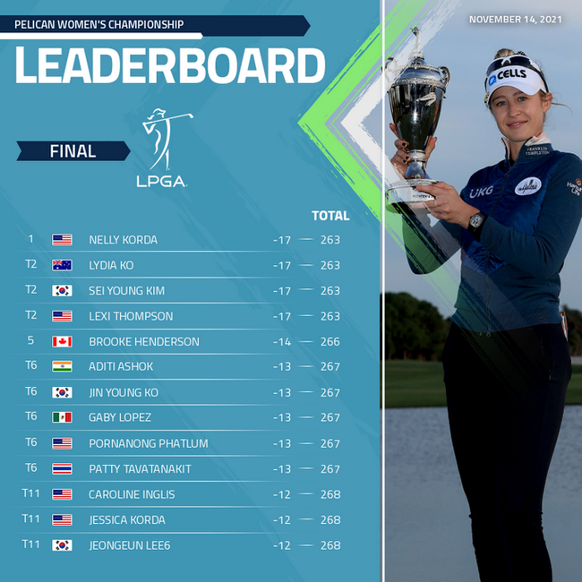 结果是:内莉-科达以激动人心的方式赢得鹈鹕女子锦标赛,而莱克西-汤普森却因为糟糕的推杆表现滑落。