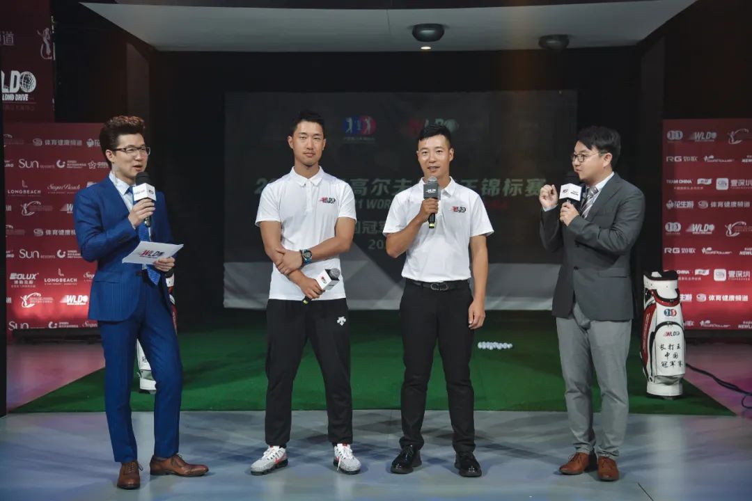 中国高尔夫超人气现场主持李子超(左一)、高烧工坊装备专家Jason(左二)高尔夫达人程驰(右二)、深圳体育健康频道主持人谭耘天(右一)赛前解读