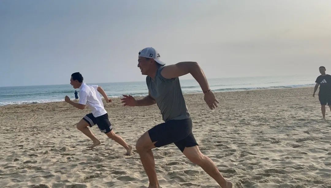 由于场地条件受限,本次集训没有功能健全的健身房,体能教练灵活运用辅助简易器械,运用队员本身自重,创新性选址沙滩和练习场草坪完成了功能性训练、灵敏性训练、高尔夫球专项、爆发力训练以及绝对力量训练等多项训练。