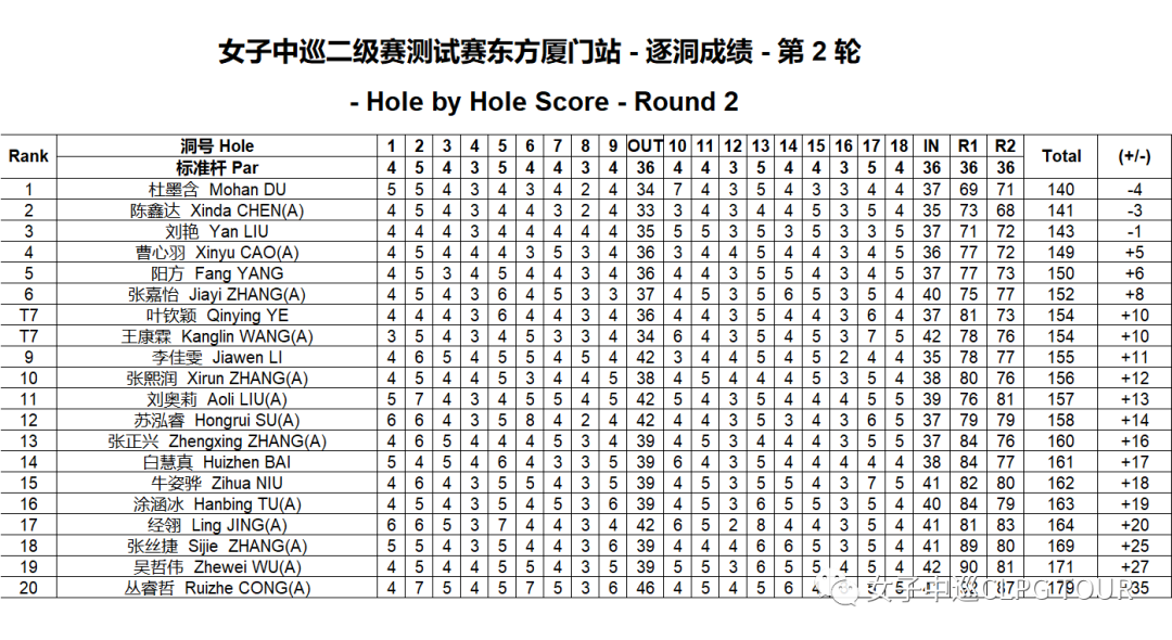 出生于2007年的香港选手曹心羽是本场成绩最好的青少年球手,她以两轮149杆(77-72)单独位于第四位。