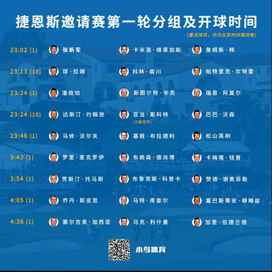 首轮比赛,张新军将同组有“蜘蛛侠”美名的哥伦比亚名将卡米洛·维莱加斯,以及赢过两座美巡赛冠军的美籍韩裔老将詹姆斯·韩,在北京时间大年初七23:02,里维埃拉1号洞发球台,开出自己在捷恩斯邀请赛上的第一杆。