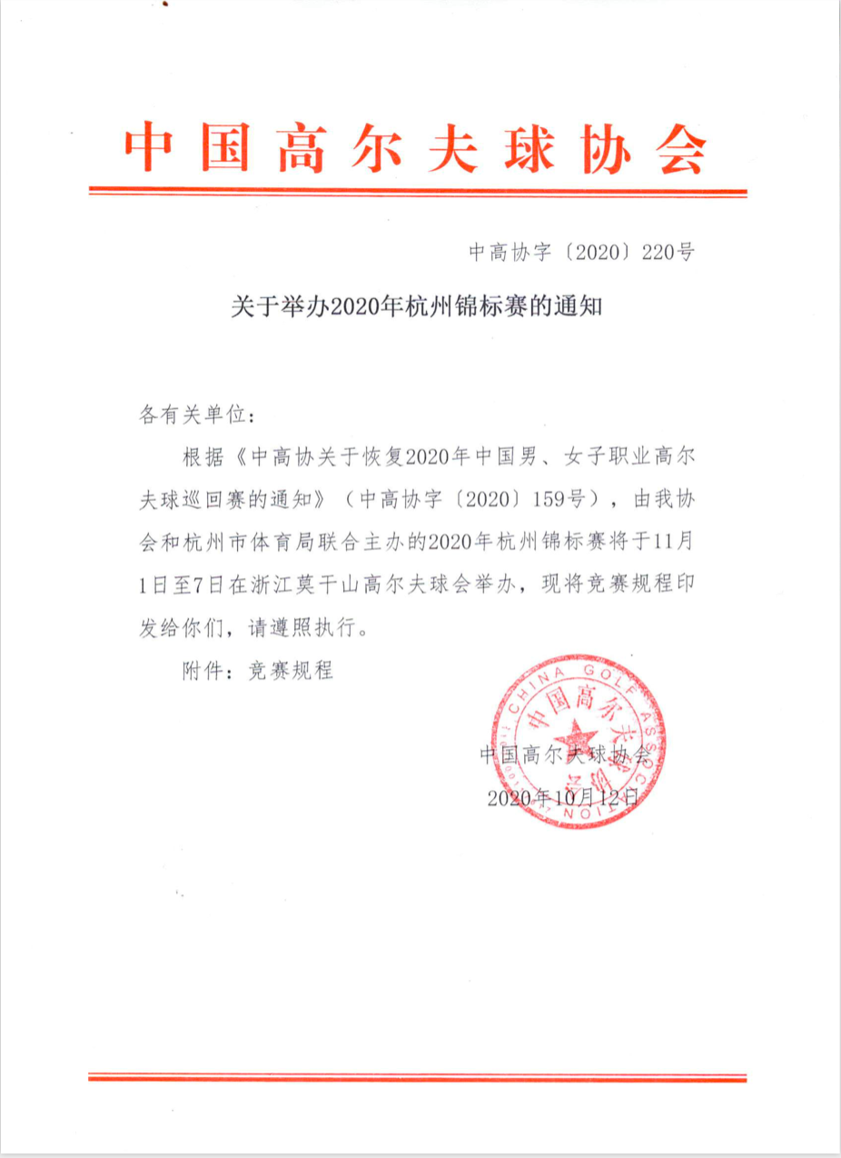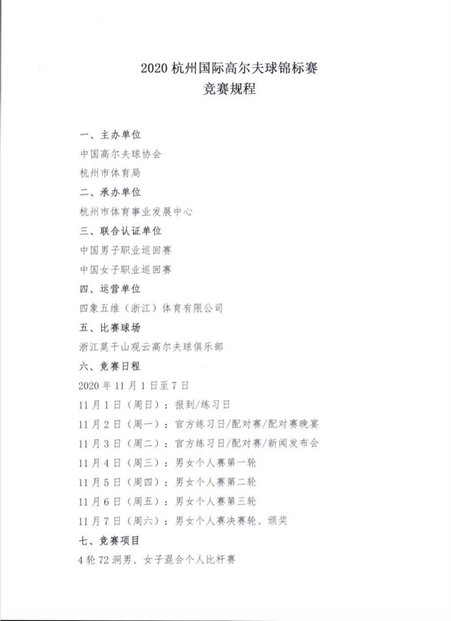 10月15日消息,由中国高尔夫球协会、杭州市体育局主办,中国男子职业高尔夫球巡回赛、中国女子职业高尔夫球巡回赛联合认证,杭州市体育事业发展中心承办,四象五维(浙江)体育有限公司独家运营的杭州国际高尔夫球锦标赛,将于11月1日-7日在浙江莫干山观云高尔夫球会全新亮相。