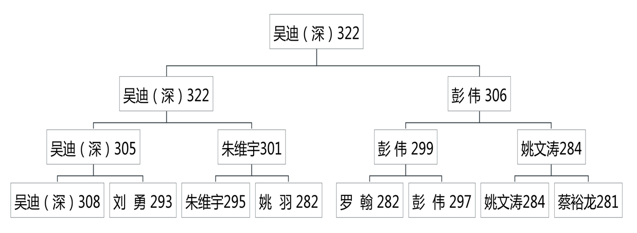 男子组的八强选手来自深圳的吴迪、彭伟(天津)、朱维宇(中山)、姚文涛(昆明)、刘勇(北京)、姚羽(海口)、罗翰(成都)、蔡裕龙(深圳).