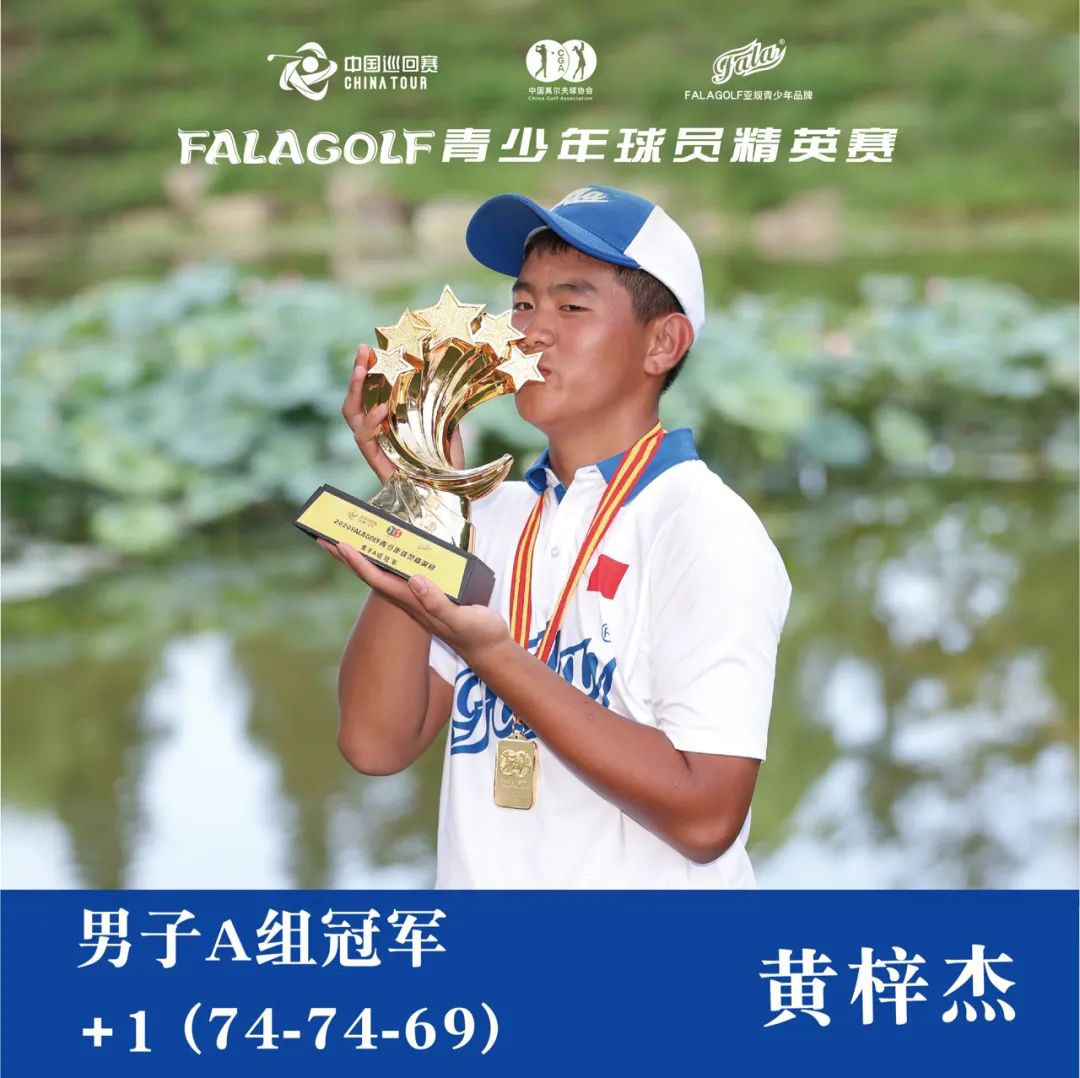前两轮并列领先的湖南少年黄梓杰今天打出低于标准杆3杆的69杆,一举甩开前两轮并列领先、今天打出74杆的北京球员周楚涵。黄梓杰以总成绩+1(74-74-69)夺取冠军,获得男子中巡赛复赛之后的一站外卡资格。