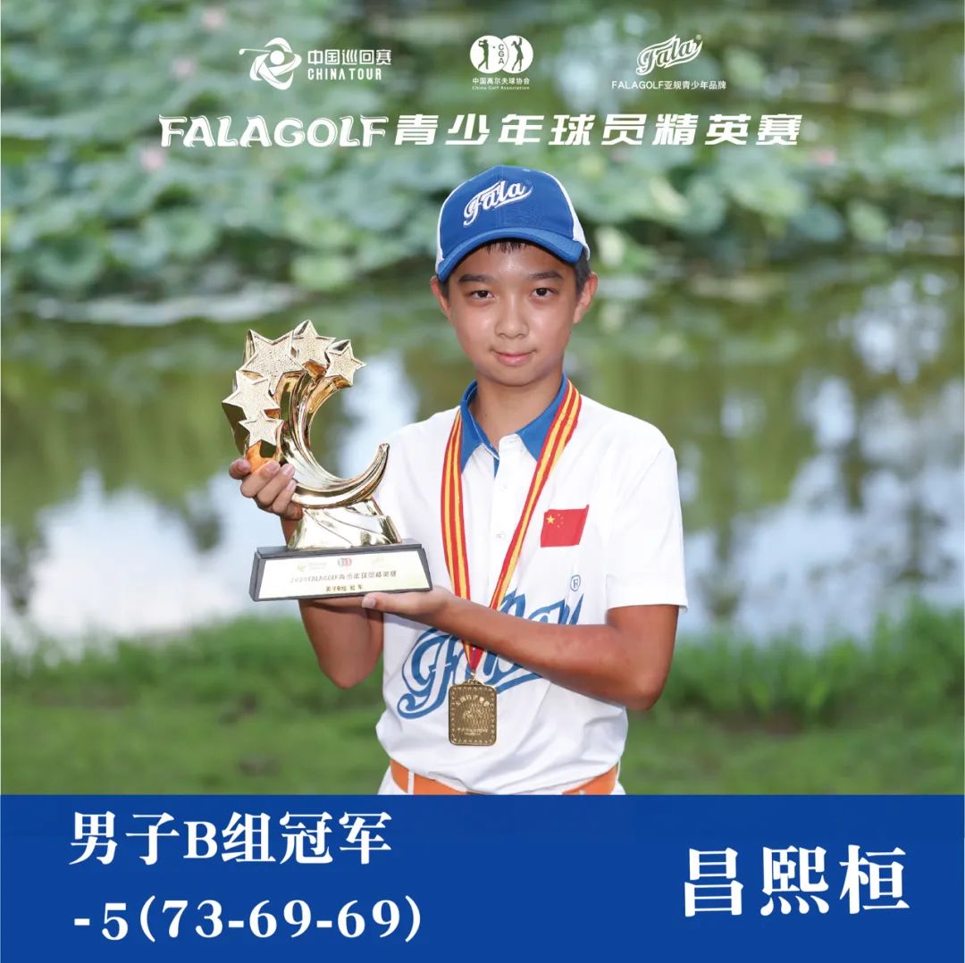 中高协男子青少年B组排名第一的北京少年昌熙桓,连续第二天交出69杆,三轮总成绩-5(73-69-69),领先第二名刘宗翰16杆,获得冠军。
