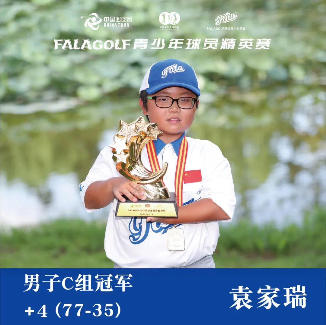 今天C组的小选手进行了9洞的角逐,首轮以77杆完赛的北京选手袁家瑞在今天交出35杆(-1),总成绩+4(77-35)赢得了自己第一个全国比赛的冠军。