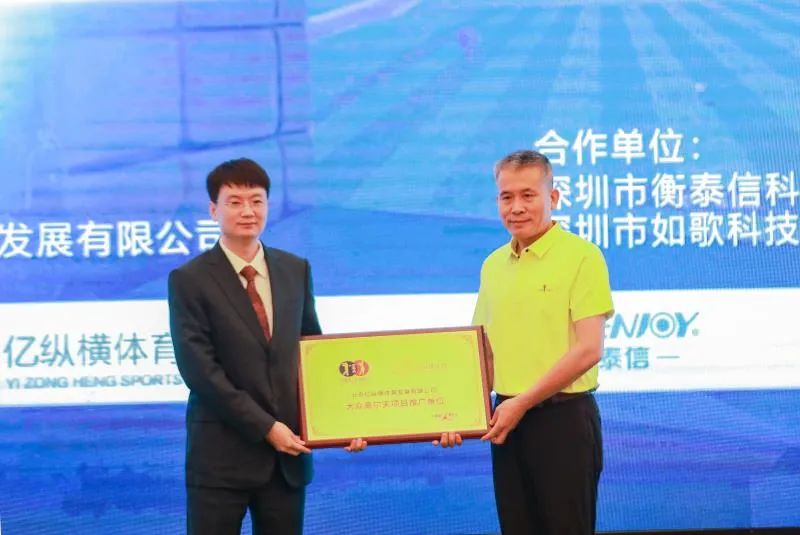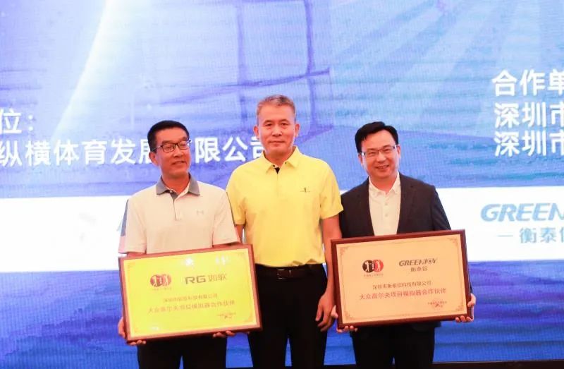 领导和嘉宾致辞后进行了项目授牌仪式。北京亿纵横体育发展有限公司作为中国大众(室内)高尔夫项目全国唯一推广单位,深圳市衡泰信科技有限公司和深圳市如歌科技有限公司作为中国大众(室内)高尔夫项目模拟器合作伙伴,从中国高尔夫球协会秘书长庞政手中接过沉甸甸的荣誉牌匾,肩负起了推动中国高尔夫未来蓬勃发展的一份责任担当。