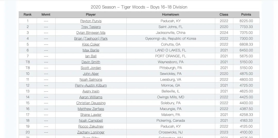 今年,马秉文在青少年巡回赛中交出了两个亚军、两个季军、一个第四的成绩单,表现亮眼。他的排名也上升到了HJGT榜单上16-18岁组的第三名!