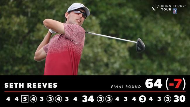 29岁左撇子球员瑟斯-里夫斯(Seth Reeves)曾就读于佐治亚理工大学,星期天打出64杆,从落后8杆追赶上来,取得这一站光辉国际巡回赛胜利。他四轮成绩为274杆(74-67-68-64),低于标准杆11杆。