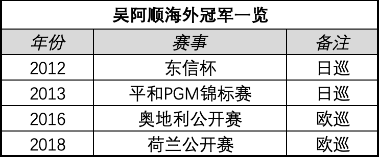16岁才第一次接触高尔夫,22岁即打入亚巡赛,27岁成为男子日巡赛第一个中国内地冠军,29岁荣膺中国第一位本土欧巡赛冠军,30岁成为第一位在欧洲赢得欧巡赛的中国人……吴阿顺的成长之路,高效而又稳健,冠军数不算多,却个个分量十足。