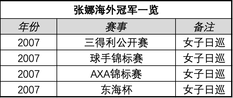 而那仅仅只是开始,接下来短短三个月时间内,25岁的张娜竟然再次连下三城,用惊人的女子日巡 “4冠王”掀起了日本赛场的一股“中国旋风”!迄今,她也是在海外巡回赛单赛季赢得冠军最多的中国内地球员。