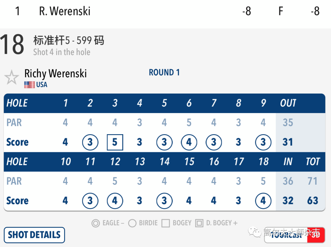 美巡赛-3M公开赛在TPC双子城结束首轮比赛的争夺,美国球员里奇·威尔斯基全场抓下9只小鸟,只在3号洞吞下破击,63杆(-8)完成比赛,以一杆优势排在领先榜首位。