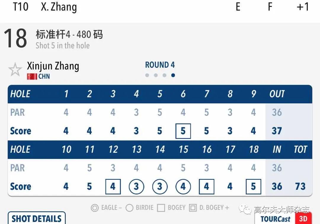 在超高难度的谬菲尔德乡村俱乐部,这个成绩帮助张新军杀入前十,并列第10也是他复赛以来的最佳成绩,更成为首位晋级季后赛的中国内地球手。