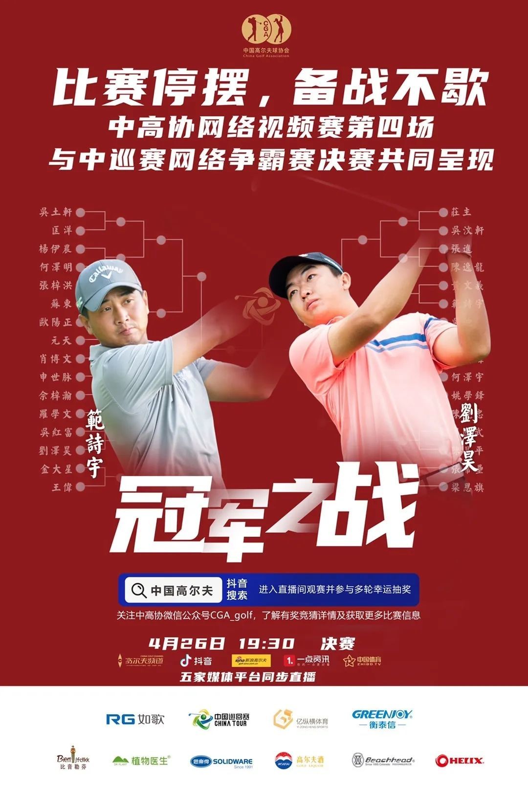 中高协网络赛第四场与中巡赛-如歌网络争霸赛决赛共同呈现。最终,范诗宇轰出了本次比赛唯一一个一杆进洞,以赢4洞剩2洞的成绩战胜刘泽昊赢得冠军,收获2万元人民币奖金。此后,范诗宇与名将梁文冲进行PK,又以赢3洞剩2洞的战绩取胜。