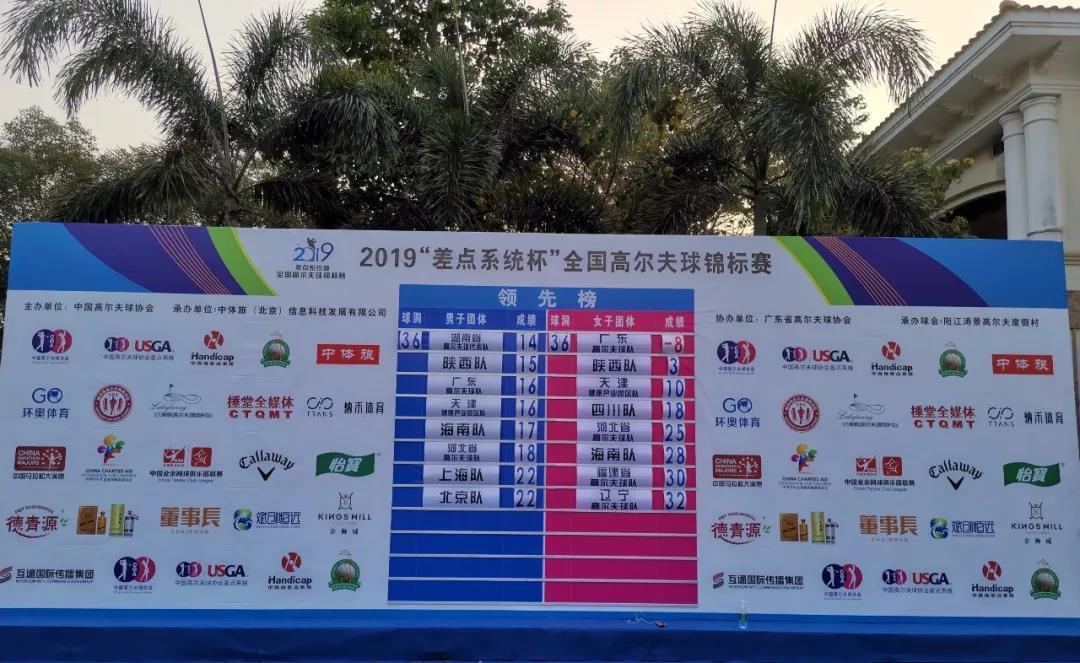 广东女队、湖南男队分别以第二轮总杆214杆,低于标准杆8杆和226杆,高于标准杆14杆的成绩领跑。