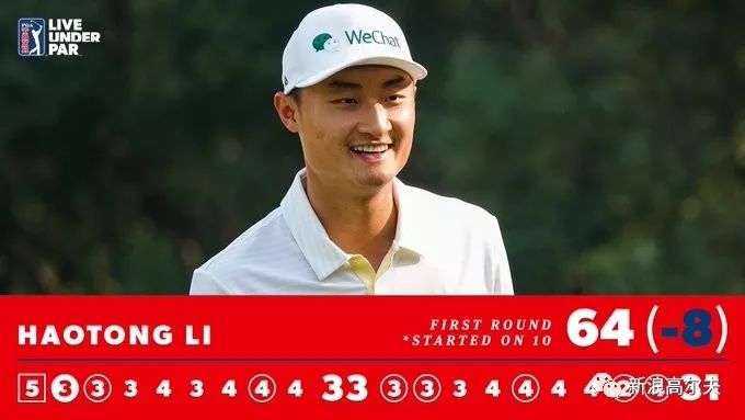 李昊桐从10号洞出发,他在前9洞打出5鸟0柏忌的成绩,转场后虽然1号洞吞下柏忌,不过2号洞成功射鹰。