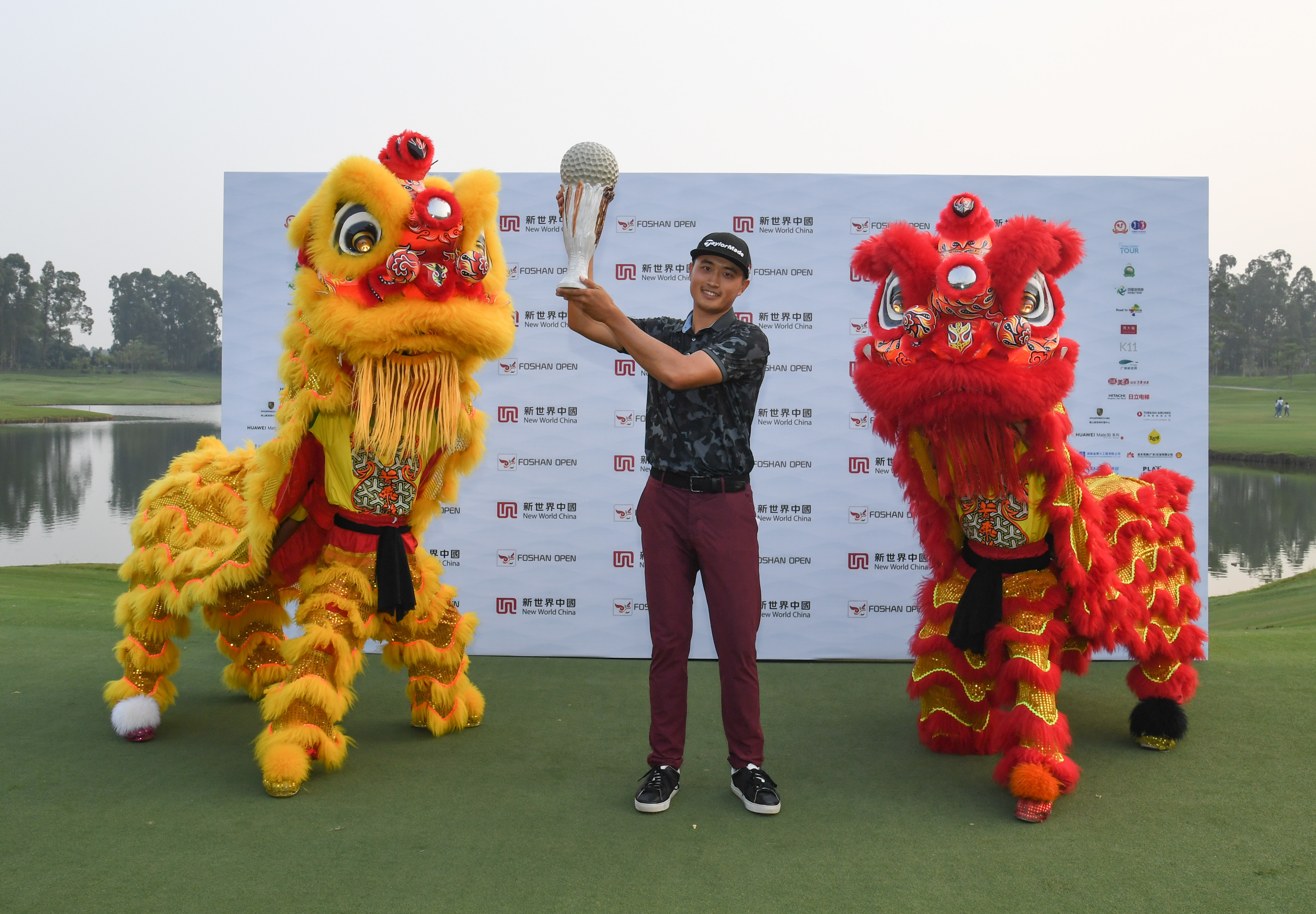 白政恺捧杯(10月27日,佛山)激动人心的结局今天在佛山高尔夫球会上演。2019欧洲高尔夫球挑战巡回赛-佛山公开赛落下大幕,22岁的CGA奥运启梦之队新星,广东小将白政恺创造历史,在决赛轮交出65杆,以265杆(71-63-66-65,-23)的总成绩,4杆优势夺冠,成为赛事举办以来诞生的首个本土冠军,也是挑战巡回赛的首位中国冠军。