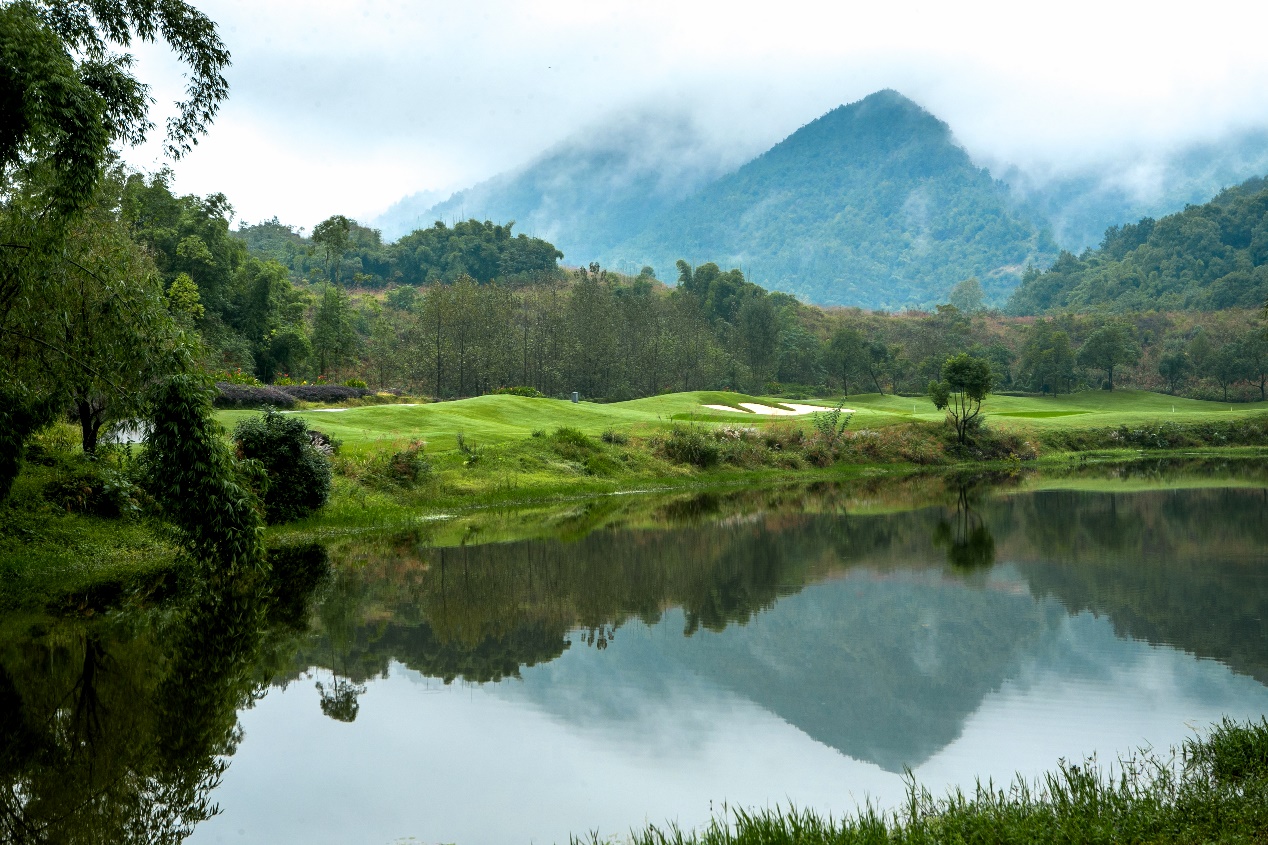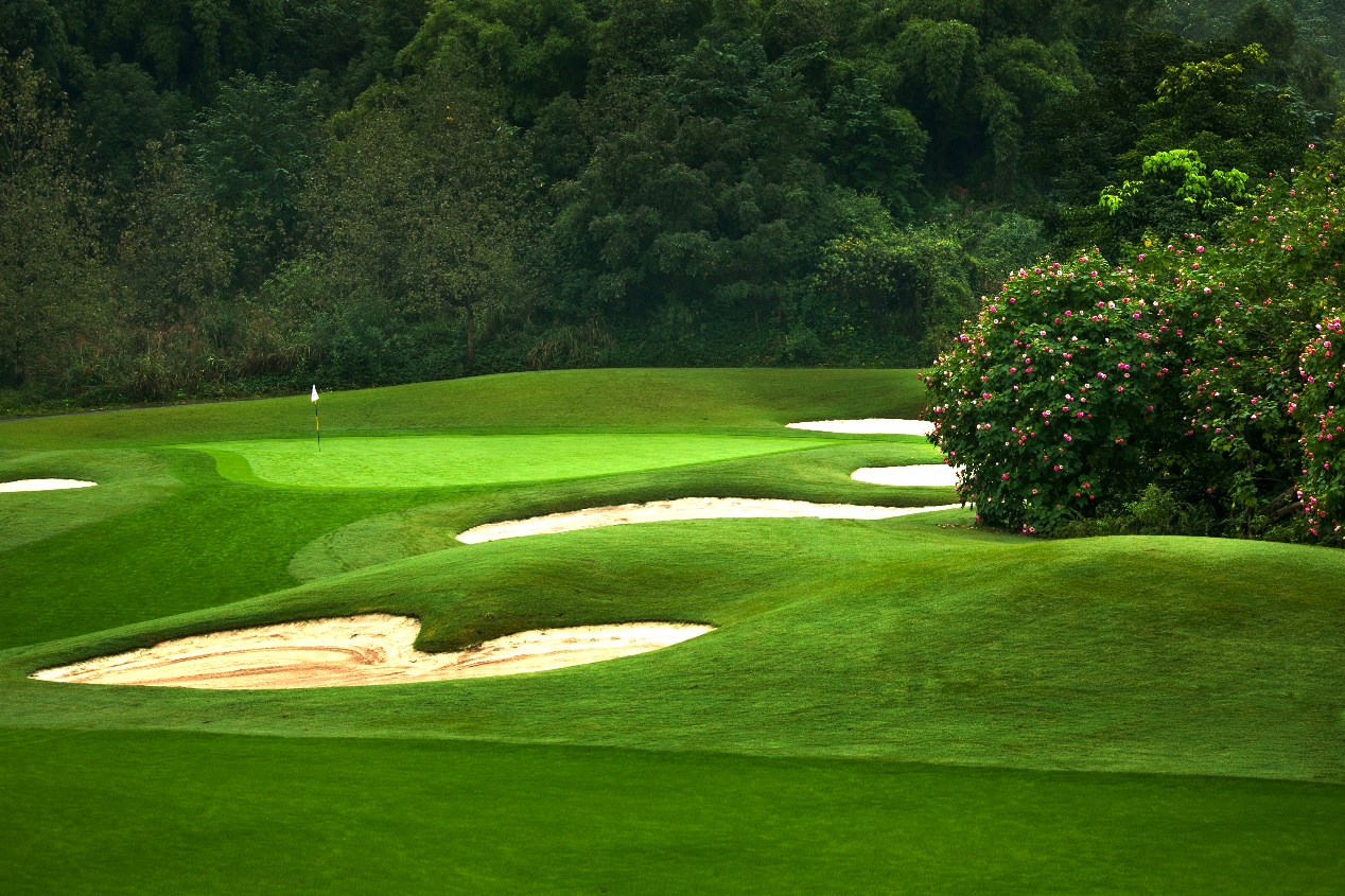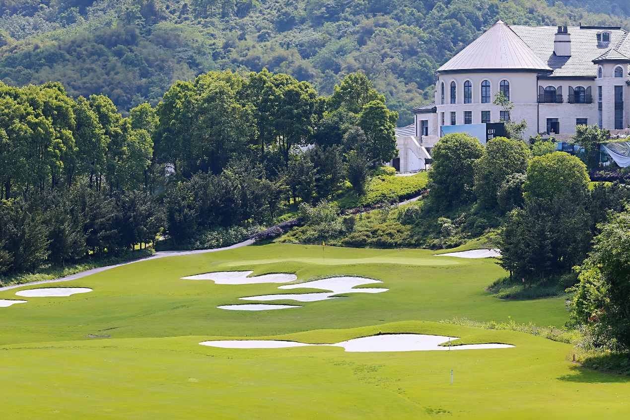 重庆上邦体育俱乐部身处缙云山麓毗邻著名景区海蓝云天,共18洞,标准杆72杆,球道总长7105码。没有车水马龙的熙来熙往,却有着世外桃源般的静谧和温婉。澳大利亚设计师在保持南方丘陵景观和自然植被的同时,将球道融于大自然,大量的湖泊点缀其间,更拥有超过100个沙坑。虽是山地风格球场,但球道却属丘陵类型。自然障碍多、球道起伏大无疑对即将参赛的国内顶级青少年选手是个严峻的考验。