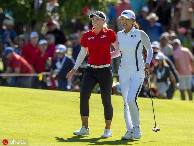 北京时间8月26日,世界第一高真荣在加拿大女子公开赛最后一轮,不能不与卫冕冠军布鲁克-亨德森一起走上18号洞果岭。