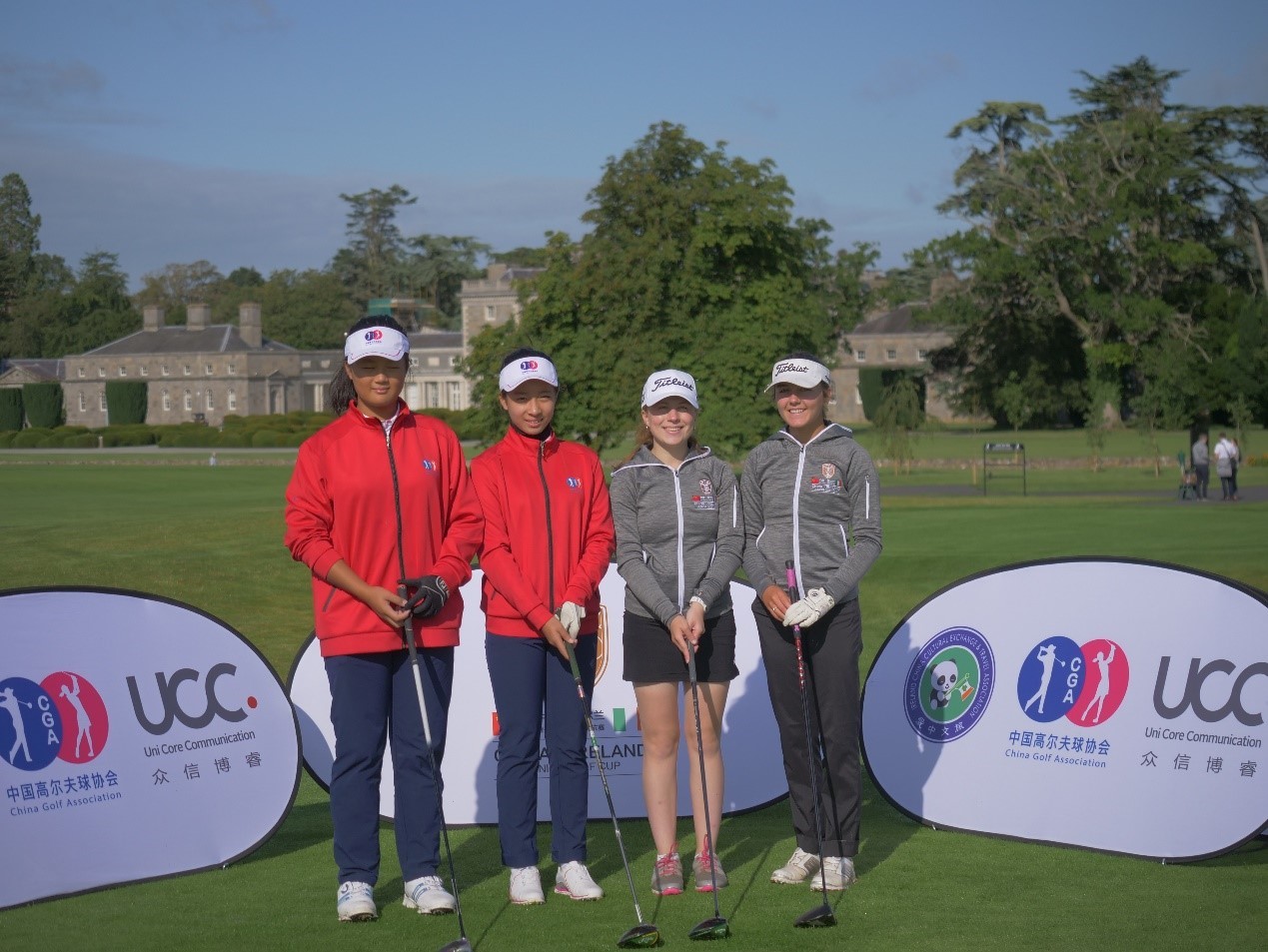 8月13日,由中国高尔夫球协会主办,众信博睿整合营销咨询股份有限公司、爱尔兰中国文化交流旅游协会承办的“中国-爱尔兰青少年高尔夫球对抗赛”开赛仪式于爱尔兰梅努斯卡顿庄园(Carton House)高尔夫俱乐部举行。中国高尔夫球协会商务部部长惠陈隆先生,众信旅游集团副总裁王春峰先生,爱尔兰中国文化交流旅游协会蔡梁先生以及爱尔兰发展旅游局商务发展部Ciaran Mcloone,Ciaran Hyland先生参加了开赛仪式。