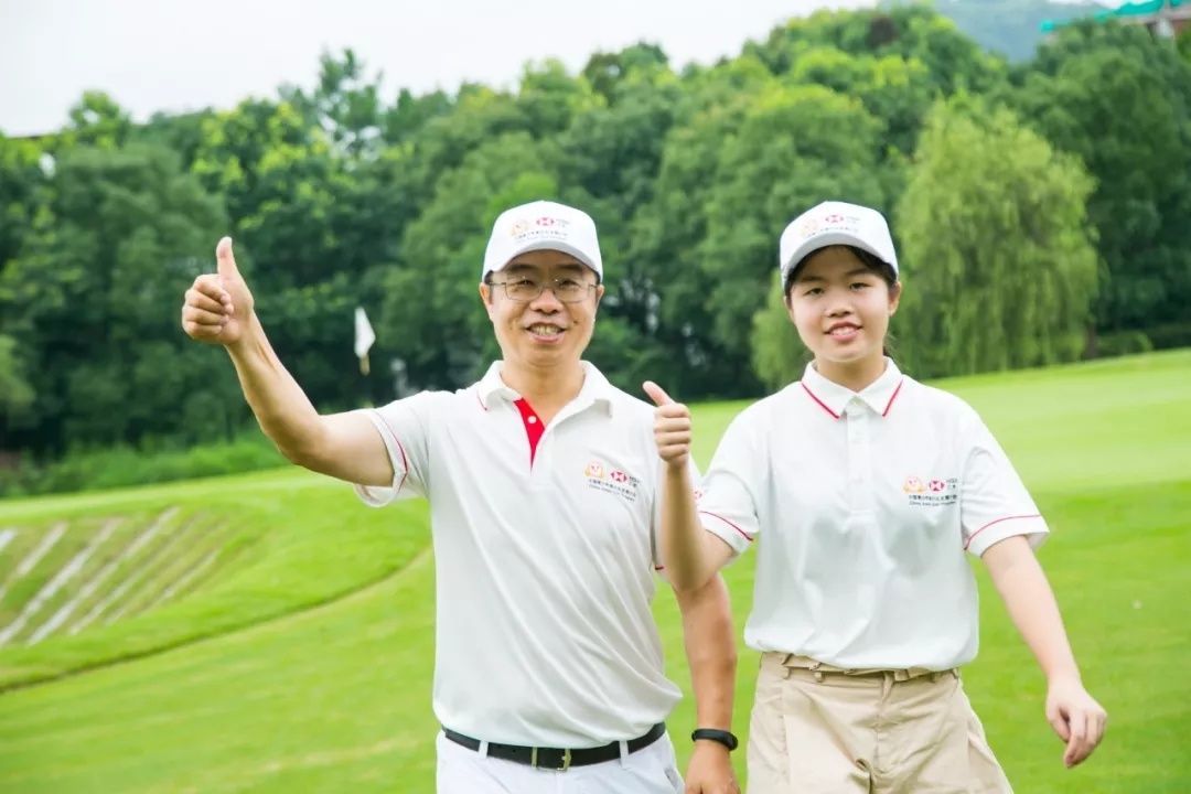 7号洞,顾亮亮和爸爸顾志泉父子组合打出一杆进洞。这是汇丰亲子挑战赛史上第一个一杆进洞。