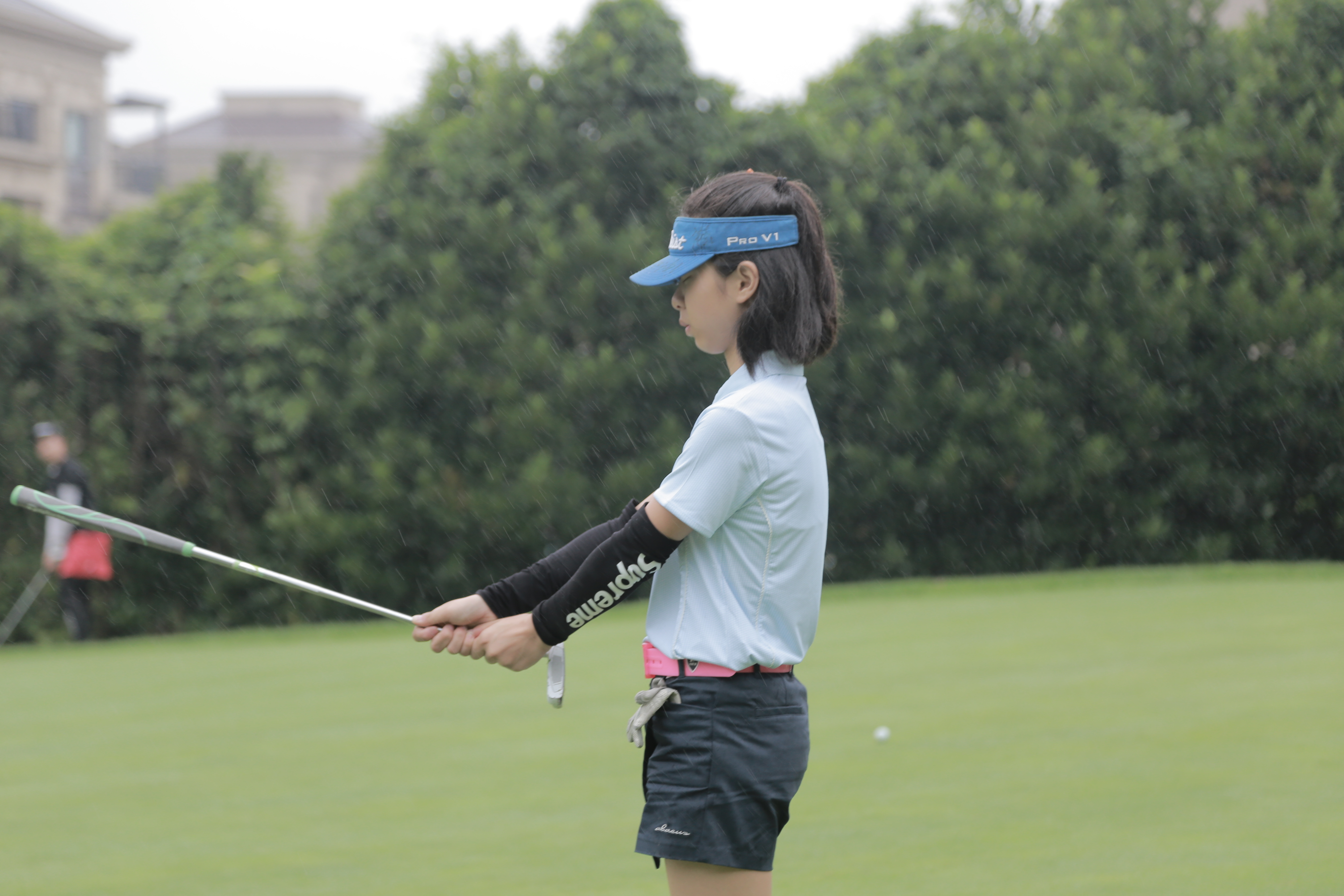 比赛当天持续降雨,这对于参赛运动员来说,无论在技术水平还是意志品格上都是极大的挑战。雨天使球道和沙坑产生积水,加上有难度的果岭,雨后的推杆变得更加难以控制。第一轮比赛的进程比较艰难,运动员全部冒雨坚持完赛,为我们呈现了精彩的雨天竞技画面,也彰显了高尔夫运动不惧困难,挑战自我的精神。