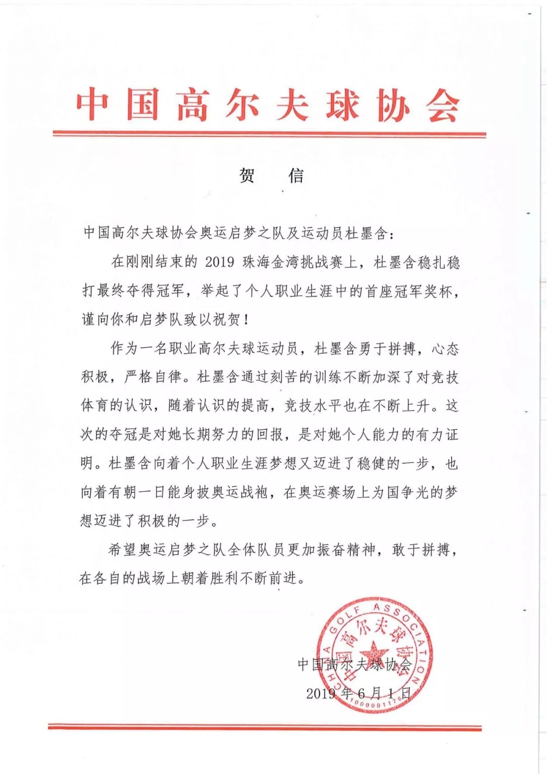 “那个推杆奇迹般地推进了洞中。我对自己说:我在做梦吗?老天眷顾我,这一次终于如愿以偿地夺冠!”杜墨含说。