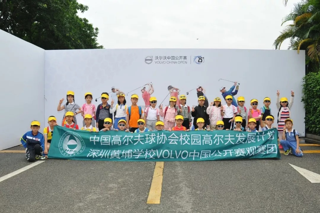 2019年Volvo中国公开赛在深圳正中高尔夫球会激战正酣。场外,“深圳黄埔学??镅笾拧钡暮岱裢馇姥?,32名小学生组成的观赛助威团由深圳黄埔学校校长万象贵亲自带队,给该校14岁青少年球手匡洋助阵,让匡洋感受到足够主场的热情。
