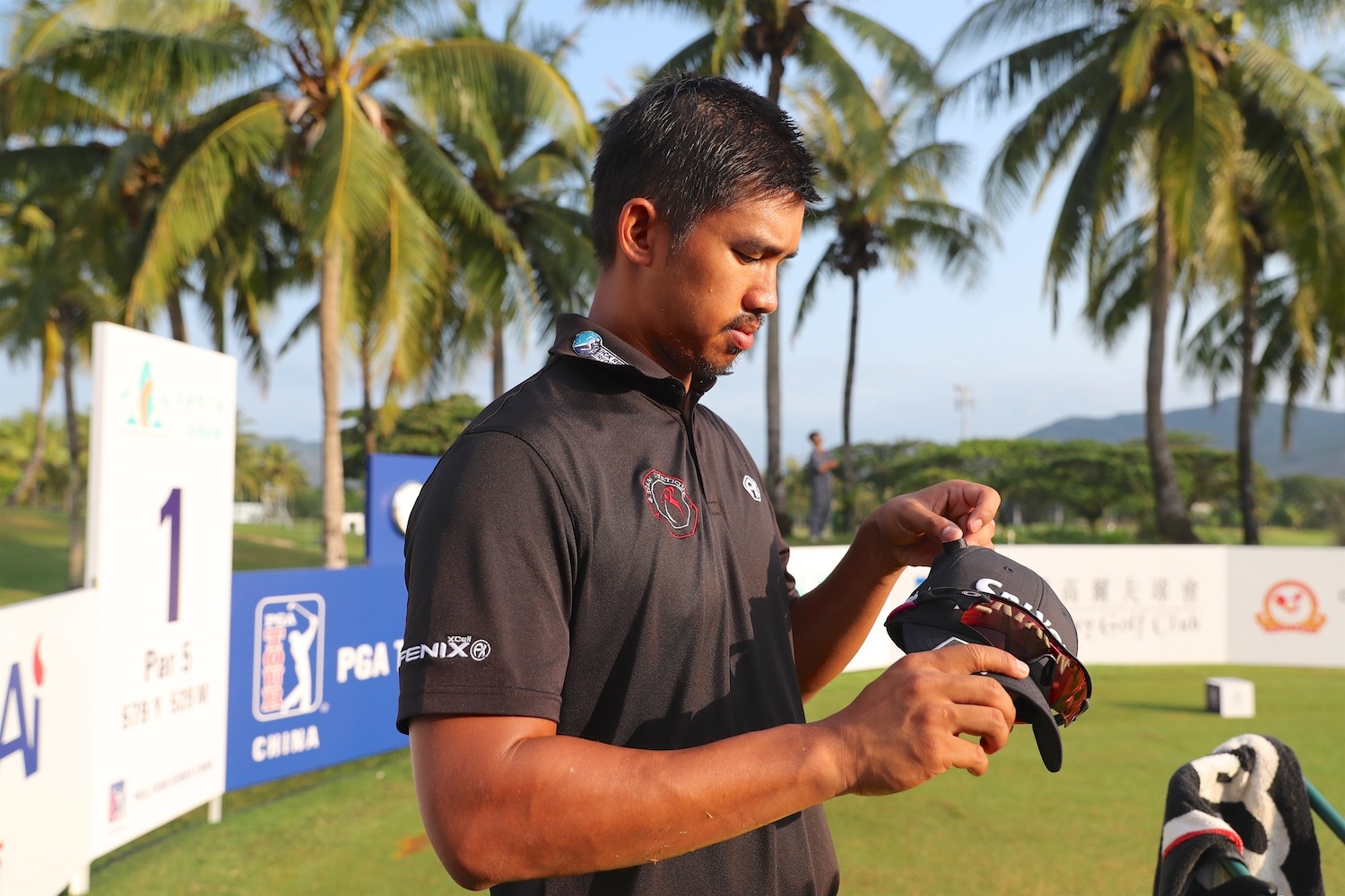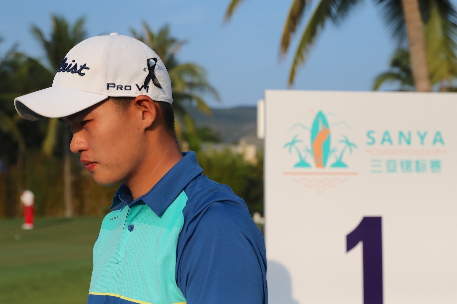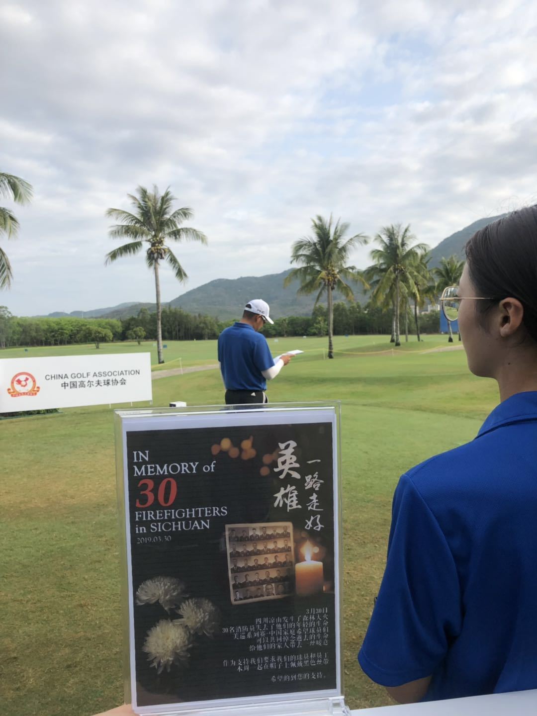 美巡系列赛-中国三亚锦标赛第二轮开杆,参赛球员佩戴黑丝带致敬凉山消防英雄