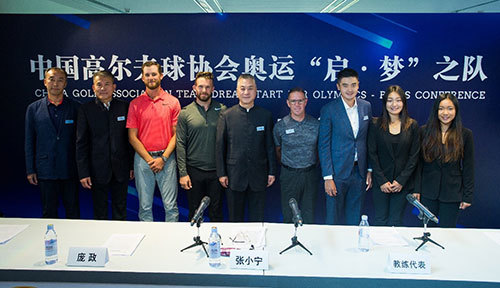 (2018年10月24日,上海)今天,中国高尔夫球协会在上海世锦赛汇丰冠军赛新闻中心召开发布会,宣布中国高尔夫球协会(CGA)奥运启·梦之队成立,并揭晓入选球员、教练员名单。中高协主席张小宁、秘书长庞政、副秘书长金宏文出席发布会。