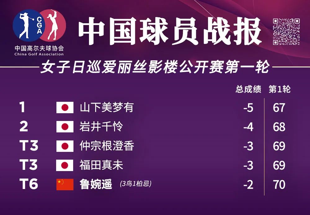 北京时间4月8日,女子日巡爱丽丝影楼公开赛第一轮结束,中国选手鲁婉遥抓到3只小鸟,吞下1个柏忌,以-2的成绩排名并列第六。