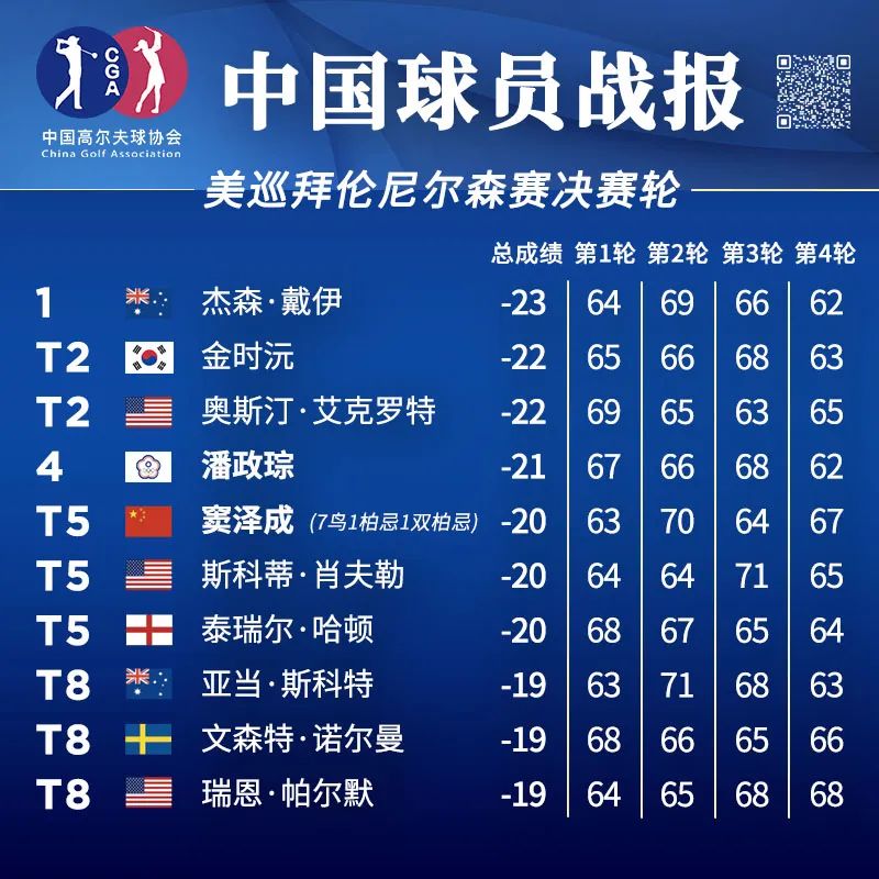 窦泽成是首位在美巡赛决赛轮领先组出发的中国大陆球员,T5的排位刷新了个人美巡赛最佳战绩,祝贺小窦!