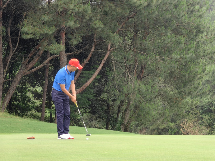 5月26日的专项技能考核在武夷山太伟高尔夫球场举行。球场属于山地类型球场,总码数不长但坡度大。5月的武夷山正是江南气候宜人的季节,球场一片清新草绿,养护状态非常好。各组学员从8点逐洞开球,到1点收杆结束。男子组须完成6877码,女子组5967码的规定一轮18洞个人比杆赛。