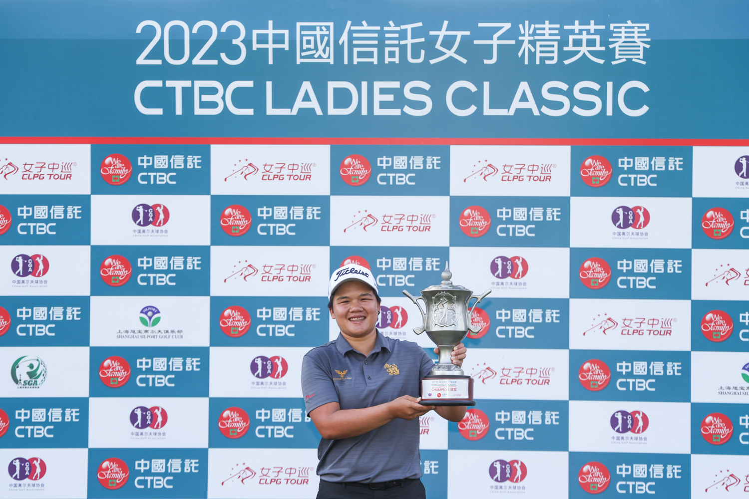 (2023/9/1)泰国28岁选手库苏玛在上海旭宝高尔夫俱乐部上演的延长赛中战胜32岁同胞帕金,赢得中国信托女子精英赛,结束10年冠军荒,第二度在女子中巡捧起奖杯。