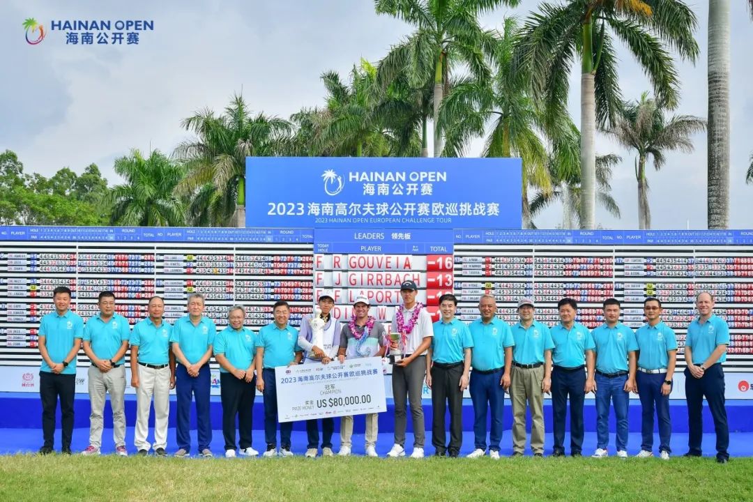 北京时间10月16日,2023 海南高尔夫球公开赛欧巡挑战赛(以下简称“海南公开赛”) 在儋州古盐田高尔夫俱乐部圆满落幕。本次赛事共吸引了来自二十余个国家,120名中外职业球手参加,角逐50万美元的总奖金。经过4天的角逐,32岁葡萄牙球星里卡多·戈维亚(Ricardo GOUVEIA)从120名中外参赛选手中脱颖而出,决赛轮打出67杆的佳绩,以四轮272杆(67-68-70-67,-16)的总成绩、3杆优势击败乔尔·吉尔巴赫(Joel GIRRBACH),拿到高球生涯第七座欧巡挑战赛冠军奖杯。