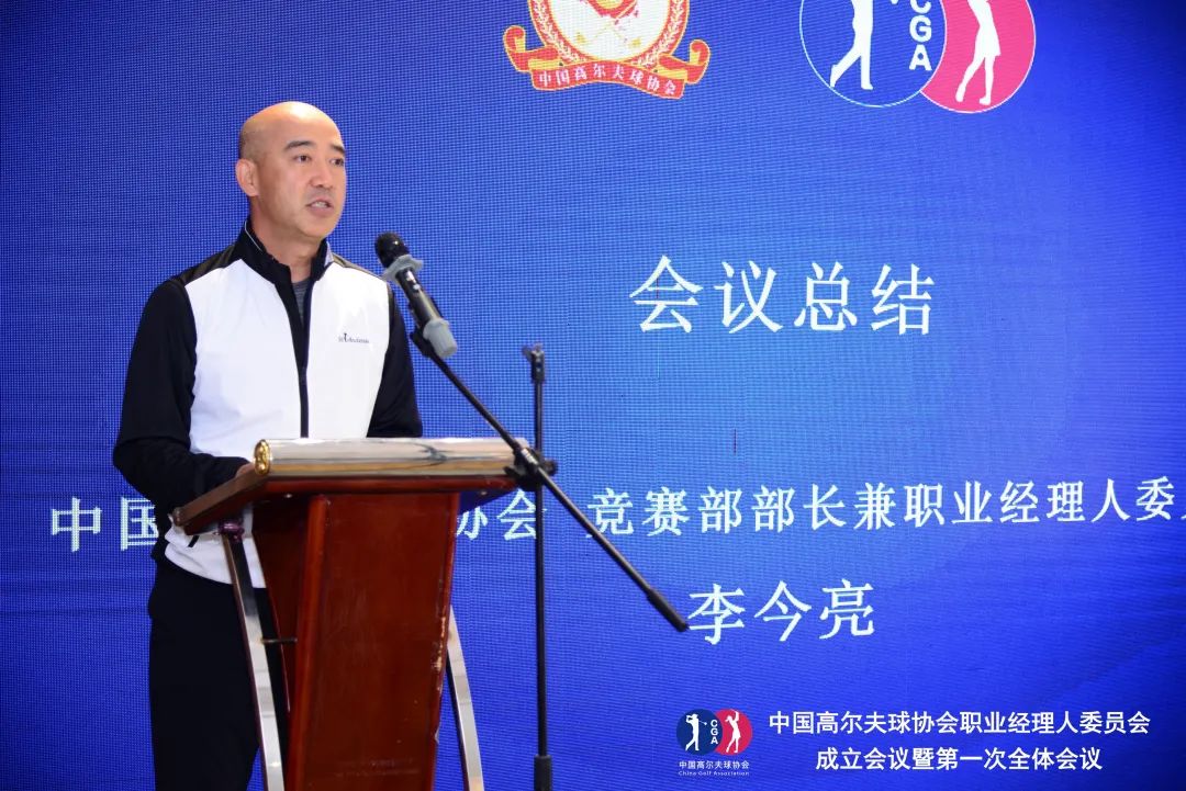 会议最后,李今亮主任做了总结发言,他表示:首届职业经理人委员会将在中国高尔夫球协会的领导下,明确发展方向,牢固树立“四个意识”,坚定做到“两个维护”,增强“四个自信”。委员会将深入学习习近平总书记关于体育工作的重要指示精神,积极贯彻落实体育总局、中高协各项部署,推进探索协会体制改革,大力推动高尔夫球运动的普及、发展和提高,为满足广大人民群众对美好生活的向往,为建设体育强国和健康中国贡献高尔夫球人的力量。