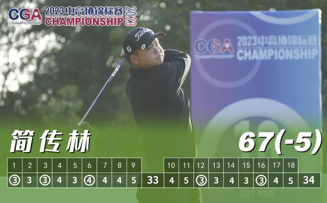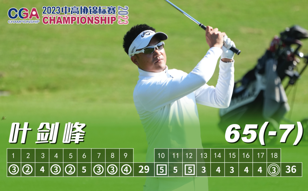 12月7日,2023中高协锦标赛在广东臻湖高尔夫球会拉开战幕,叶剑峰全天拿下1头老鹰7只小鸟,吞下两个柏忌,单轮65杆(-7)成为赛事的首轮领先者。简传林单轮交出67杆(-5),2杆之差排在单独第2位;2023中巡赛奖金榜领先者陈顾新交出68杆(-4),与黄梓杰排在并列第3位。