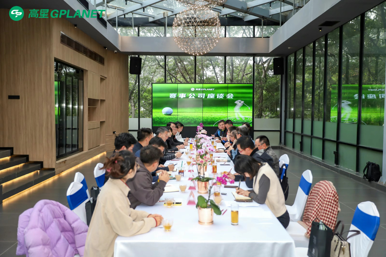 在赛事公司座谈会上,承办广东省高协和中高协赛事的多家赛事公司代表发言。广州冯珊珊体育策划有限公司、广东中奥国际体育推广有限公司、广东格林体育发展有限公司、凯联资本体育发展有限公司、深圳市瑞思体育文化有限公司、广州华美高尔夫体育发展有限公司、广州风神置业发展有限公司康体公园分公司、东莞观澜湖高尔夫球会等单位介绍了承办赛事情况,对于青少年赛事的积分、等级、参赛成本、赛事相互衔接、宣传工作、招商情况等多个方面提出意见建议。
