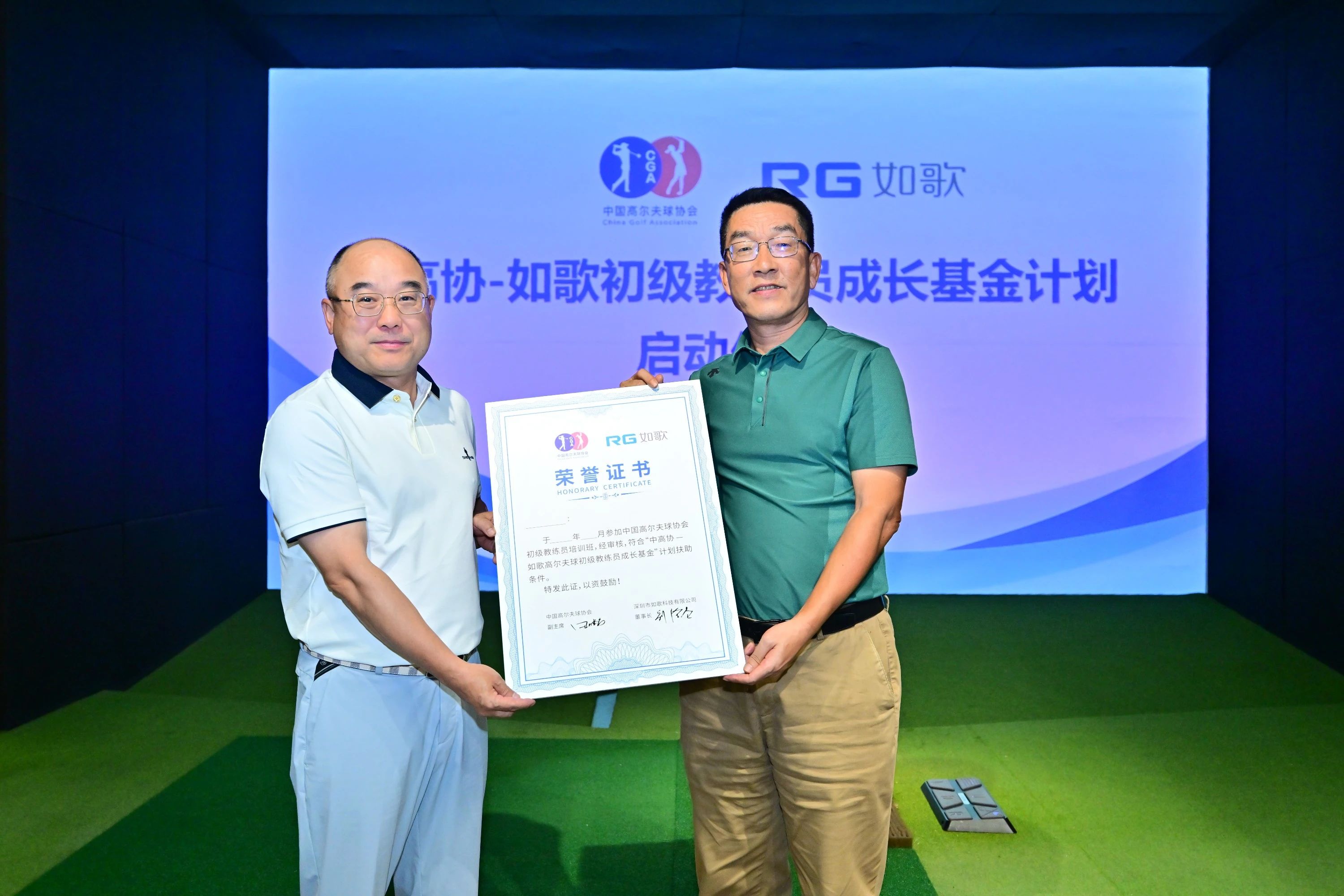 中国高尔夫球协会副主席田晓君与如歌CEO刘隆基在奖励证书庄严地签名,标志着成长基金计划正式启动,第一批获奖学员名单将于近期公示并颁发成长基金。