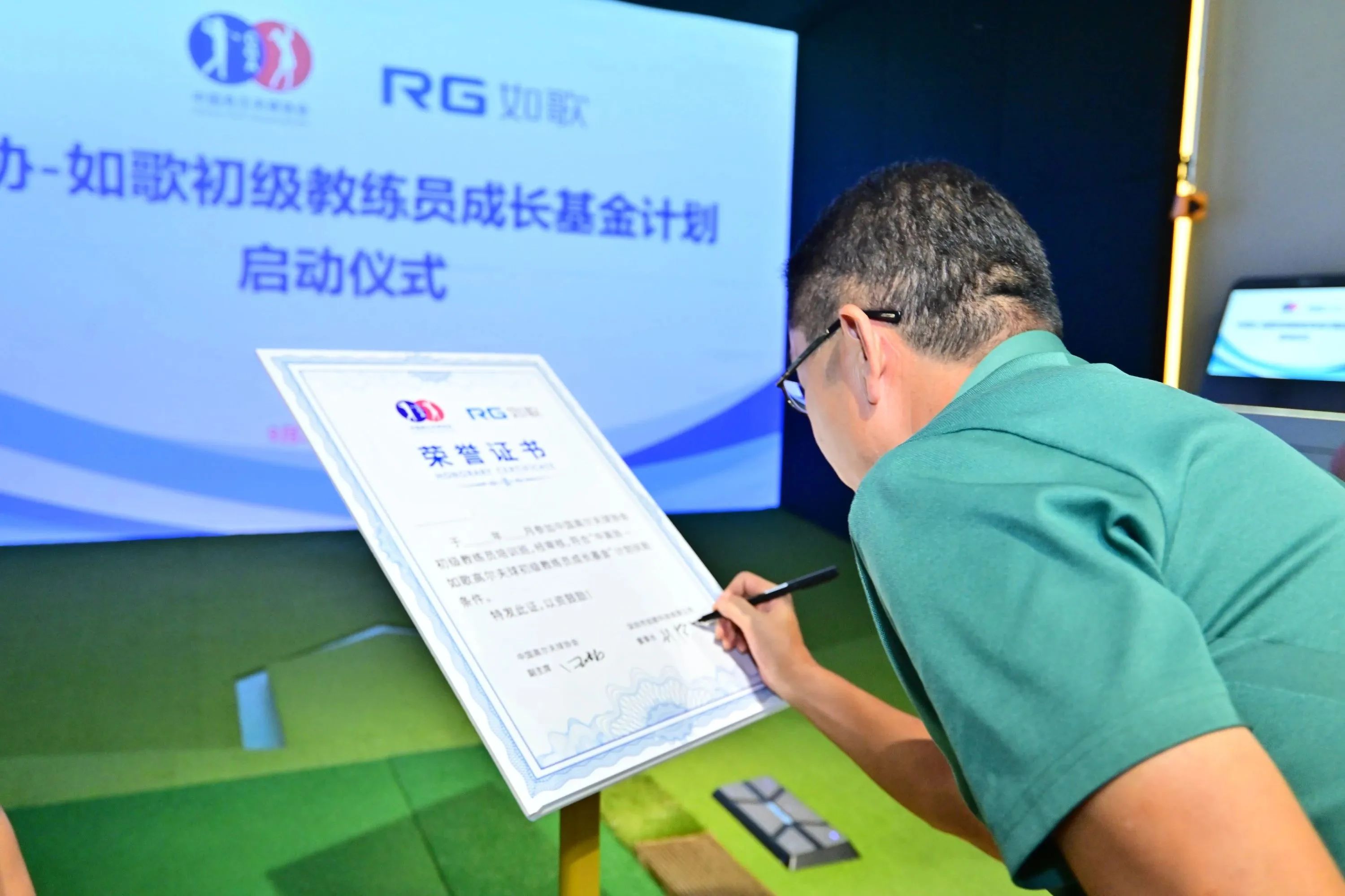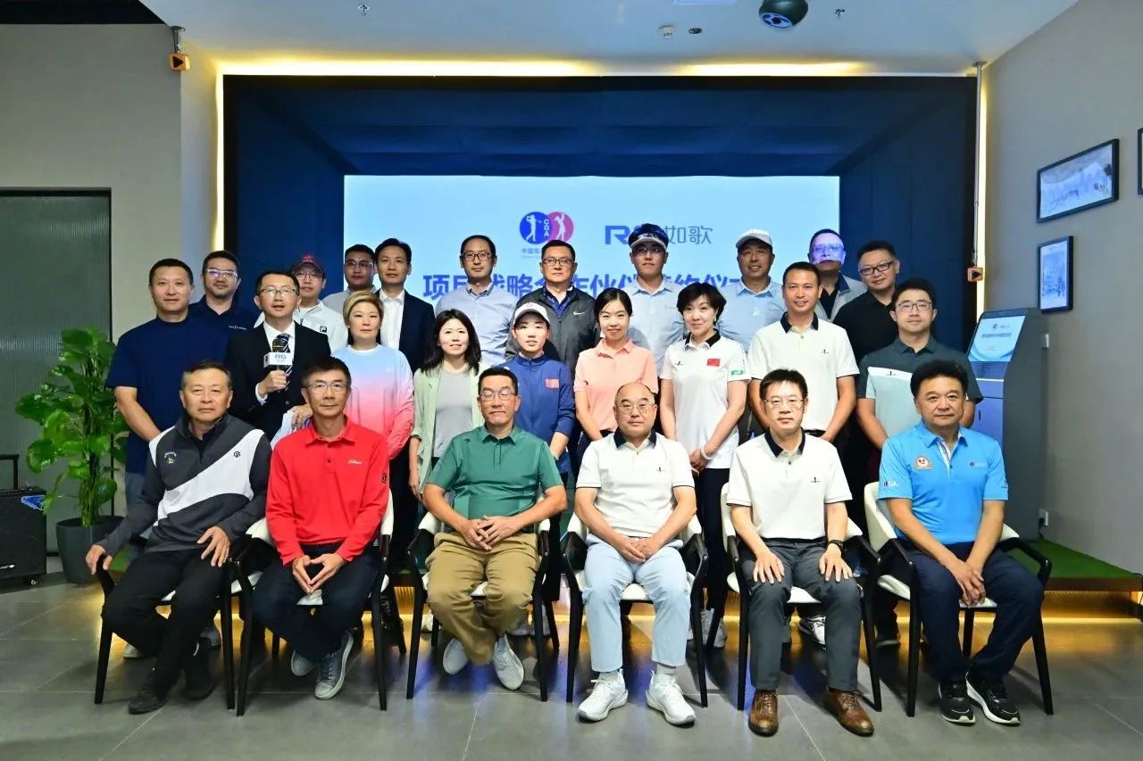 9月24日,中国高尔夫球协会与RG如歌项目战略合作伙伴续约仪式在北京高球满座高尔夫俱乐部举行。同时,“如歌·教练员打球能力测试赛”在仪式现场全新启动。