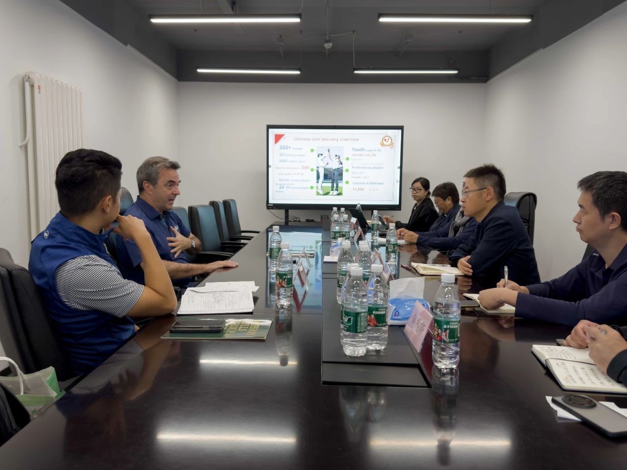 10月8日,国际高尔夫球组织苏格兰圣安德鲁斯皇家古老高尔夫球俱乐部(R&A)首席发展官Phil Anderton、亚太区发展部长Jerome Ng一行到访中国高尔夫球协会、北京市少年宫和东方天星球场访问和交流工作。