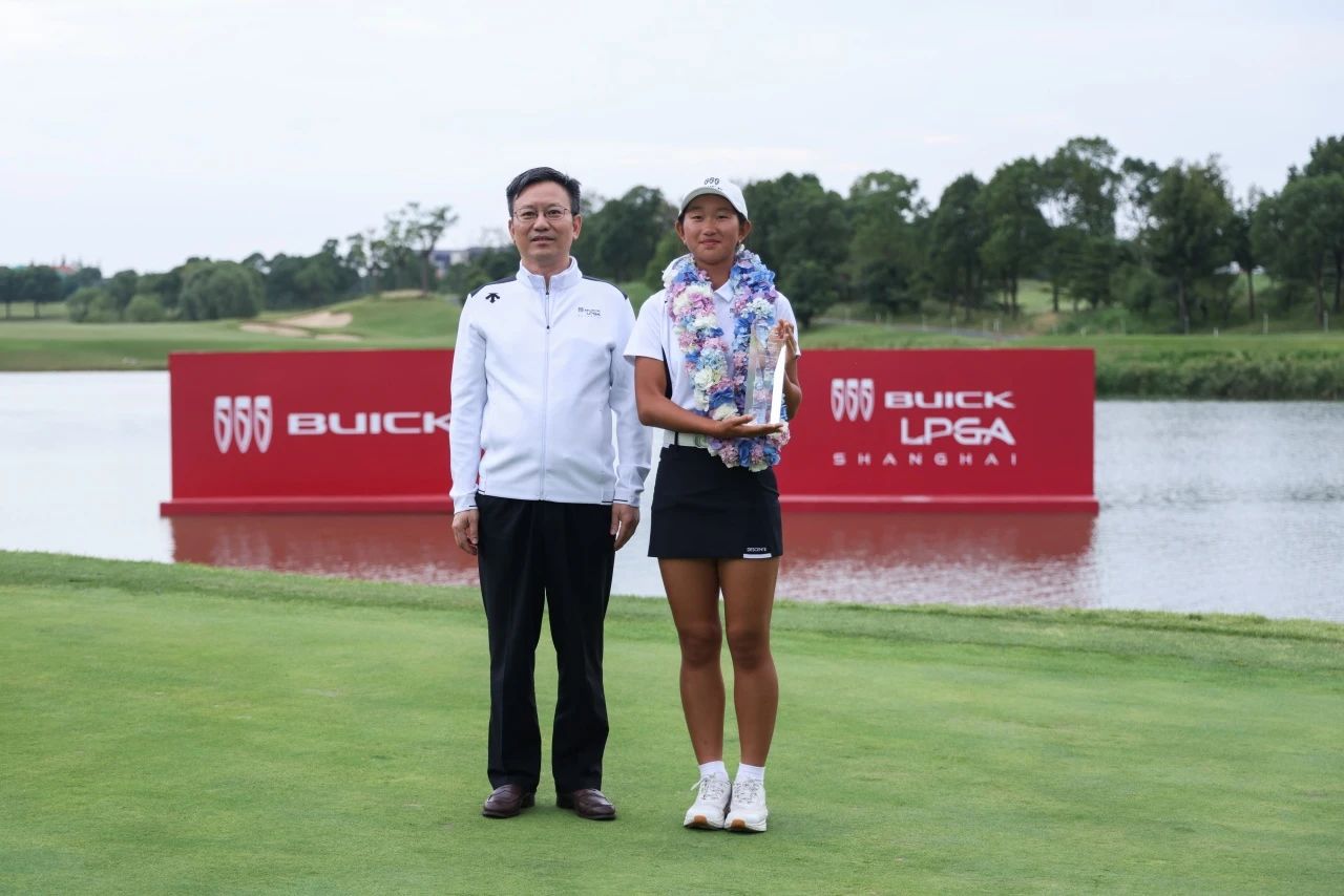 随后,国家体育总局小球运动管理中心主任、党委书记,中国高尔夫球协会主席贺凤翔为殷若宁戴上冠军花环,上海市体育局党组书记、局长徐彬为殷若宁颁发了冠军证书。最后,殷若宁从上汽通用汽车副总经理薛海涛手中接过别克女神奖杯!