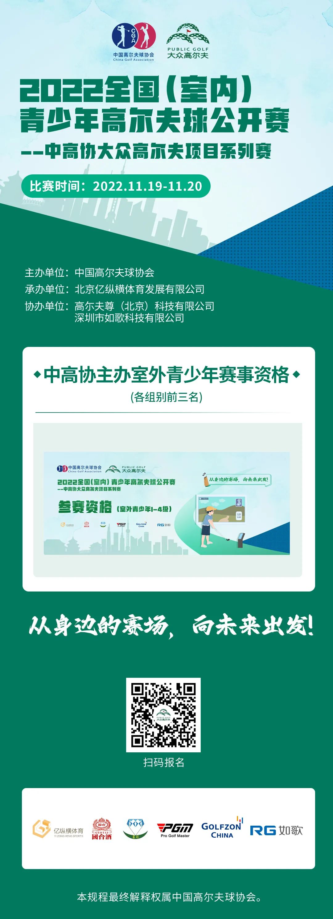 同时,在比赛两天期间(11月19日-20日)上午,中国高尔夫球协会视频号、中高协大众高尔夫视频号、新浪高尔夫视频号、卫视高尔夫视频号将同步2022全国(室内)青少年高尔夫球公开赛?;队湛矗?/span>